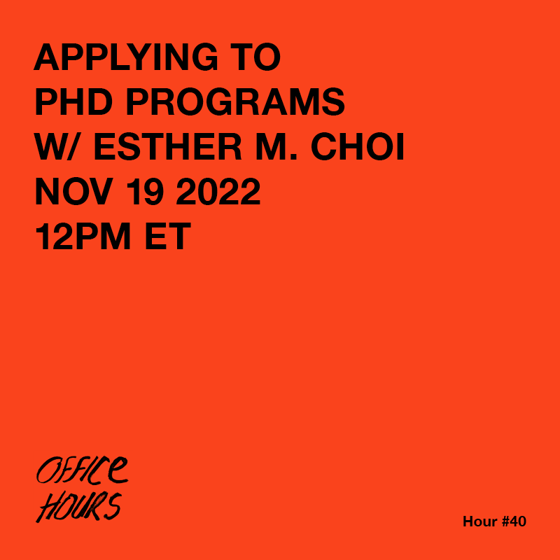 Applying to PhD programs and becoming an art/ architecture/ design historian with Esther Choi.